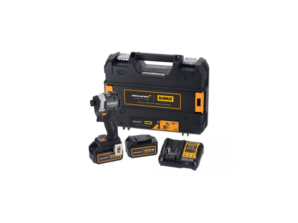 🔧 DeWalt DCF85MP2T-QW – 18V XR Bezuhlíkový Rázový Uťahovák McLaren Edition (2 × 5,0 Ah batérie + nabíjačka + TSTAK kufor)