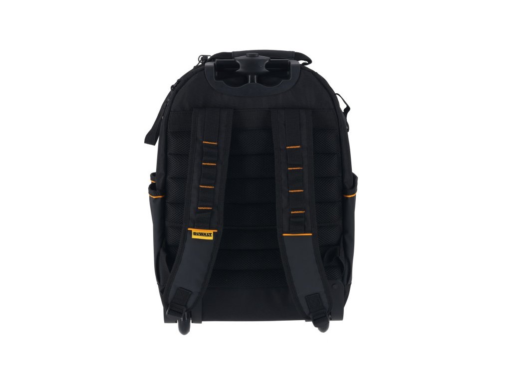 A DeWalt DWST60101-1 Pro hátizsák kerekekkel és kihúzható teleszkópos nyéllel rendelkezik, amely lehetővé teszi a szerszámok, értéktárgyak és elektronikai eszközök kényelmes szállítását és tárolását.