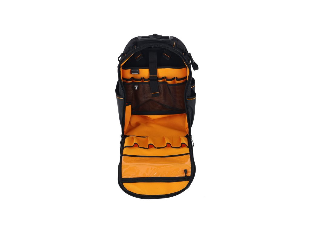 A tartós, 1680 denier anyagból készült szerkezet biztosítja a hosszú élettartamot és ellenáll a zord munkakörülményeknek. A hátizsák 46 különálló zsebbel rendelkezik, amelyek segítenek a szerszámok és tartozékok rendszerezésében.
