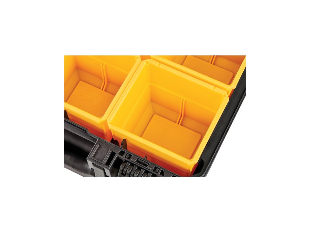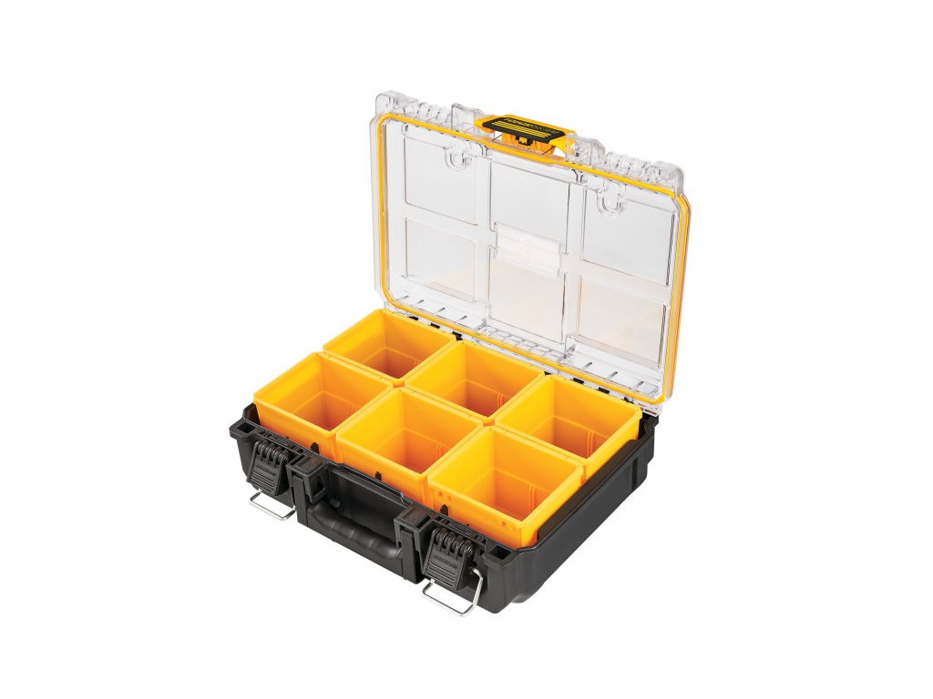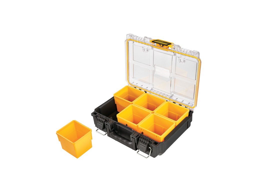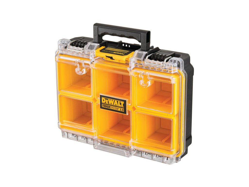 Optimális szervezés a ToughSystem 2.0 mély, kompakt rendszerzővel. 6 db kivehető, rendező rekesszel rendelkezik, a rendező rekeszeit a rétegelt lemez elválasztók behelyezésével személyre szabhatja, hogy a legjobban megfeleljen igényeinek. IP65-ös por- és vízállósággal védett, és az átlátszó fedélen keresztül látható a rendszerező tartalma. Kényelmesen hordozhatja a ToughSystem 2.0 mély, kompakt rendszerzőt a felső fogantyújánál fogva, vagy csatlakoztathatja bármely ToughSystem 2.0 termékhez a szabadalmaztatott, automatikusan csatlakoztatható oldalsó reteszekkel. A ToughSystem 2.0 mély, kompakt rendszerző bármely ToughSystem 2.0 termékkel kompatibilis.