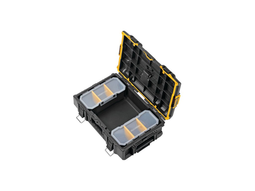 KOMPATIBILIS AZ ÚJ DEWALT FIGYELŐRENDSZERREL – a DEWALT figyelőrendszer, a belső rögzítési pontok segítségével beépíthető, így a ládák a DEWALT Tool Connect alkalmazáson keresztül, könnyen nyomon követhetők.