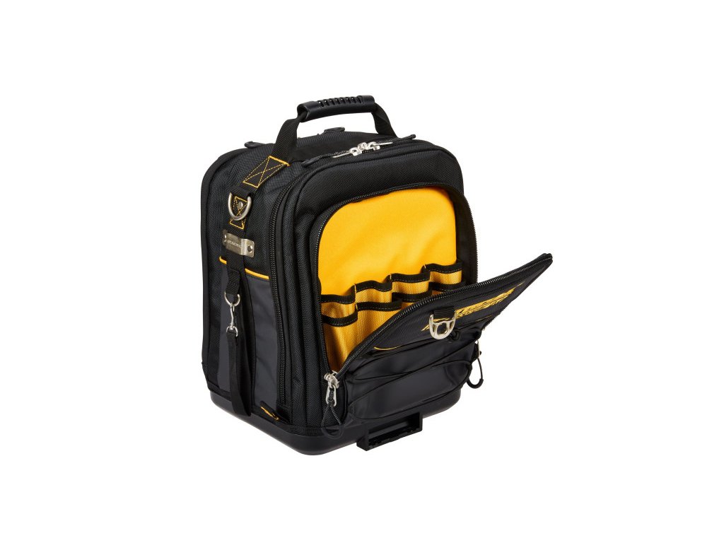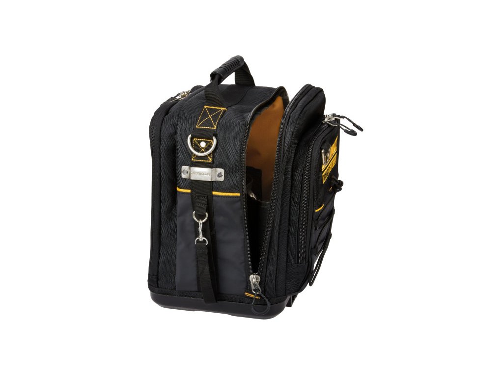 A táska emellett teljes 360°-os hozzáféréssel rendelkezik a különböző részekhez és rekeszekhez, ami megkönnyíti a szerszámok rendszerezését és rendben tartását.