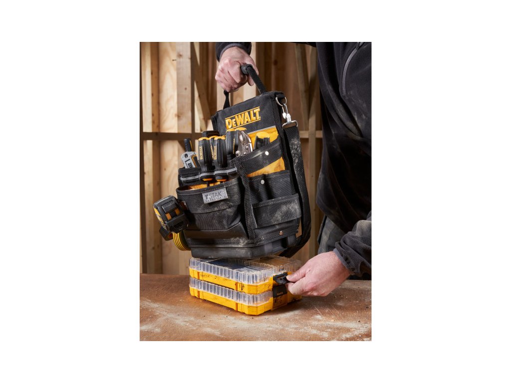 - Vízálló alap: A robusztus talp védi a táska tartalmát a nedvességtől és a szennyeződéstől, valamint kompatibilis a DEWALT rendszerezőkkel.