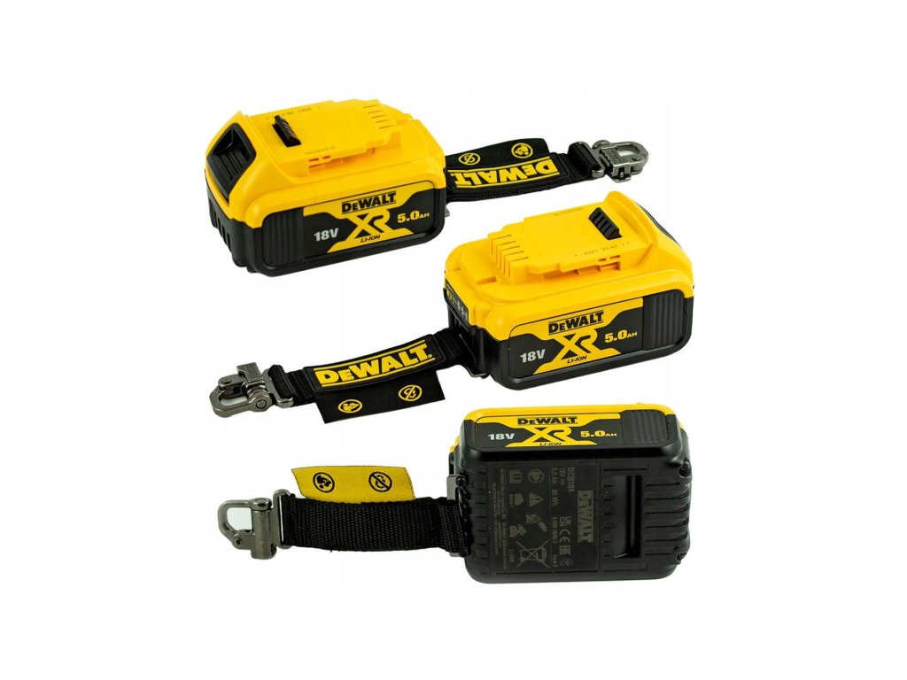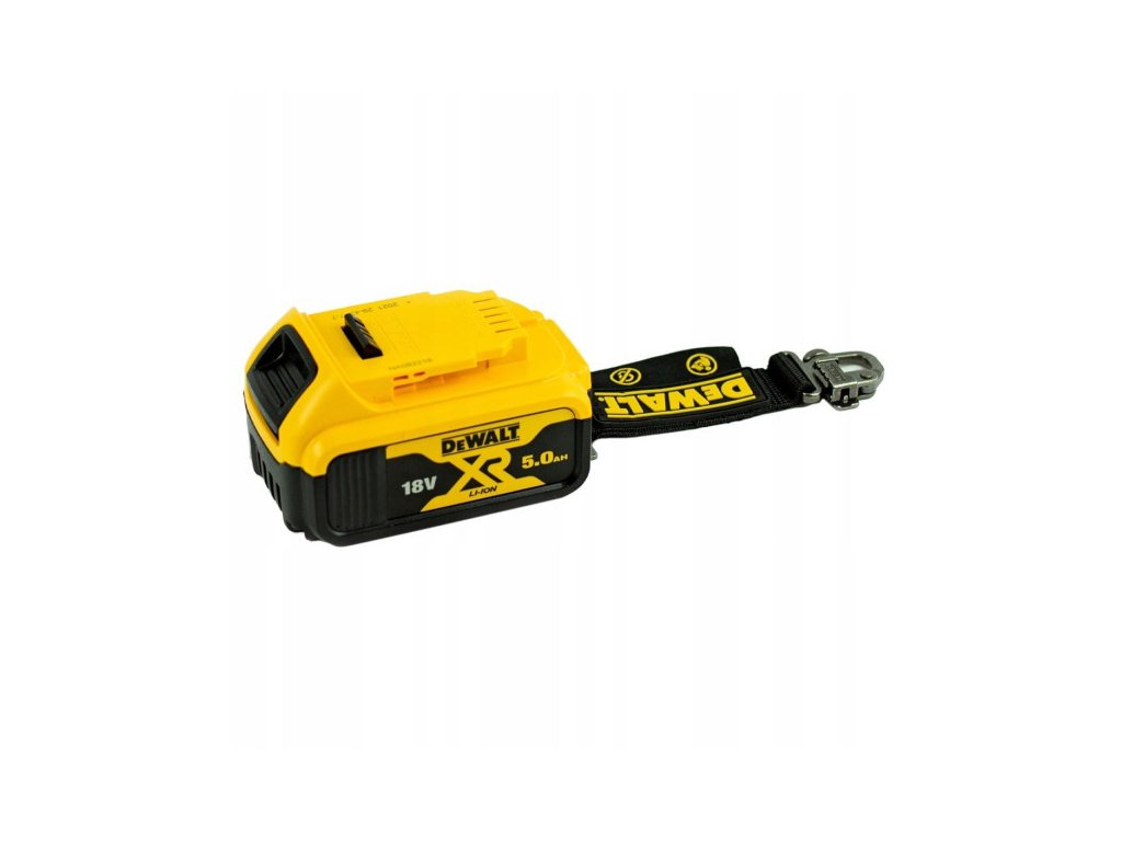 A DeWalt 18v 5,0 Ah Lanyard Ready akkumulátor nagyobb biztonságot nyújt Önnek a magasban végzett munka során, mivel biztonsági előnye, hogy ha az akkumulátor leválik a szerszámról, az akkumulátor a zsinórhoz csíptetve marad.