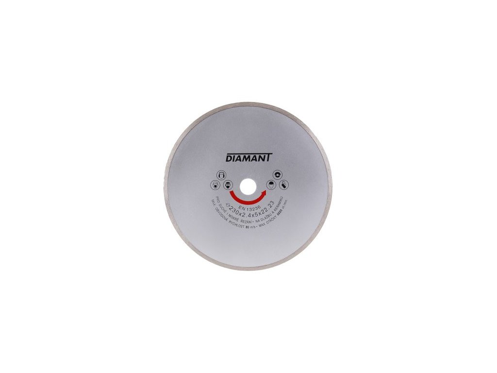 Diamond disc DIAMANT, design: FULL - all-round, high-quality diamond layer with a high content of diamond dust, precise processing - connection to the carrier disc of the disc resistant to high temperatures, use: intended for wet and dry cutting of paving and tiling, concrete, bricks, masonry, granite , marble, stone, glass, ceramics, packaging: blister with euro hole, enclosed reduction ring from 22.2 to 20 mm, dimensions: stated in the product name.