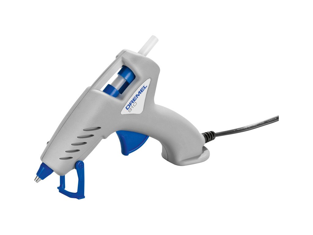 A Dremel 910 egy magas hőmérsékletű (165 °C) ragasztópisztoly csepegés szabályozóval ellátott, precíziós heggyel. A kompakt méretének és kiváló kényelmi funkcióinak köszönhetően (T-markolat, stabil talp, kihajtható támaszték) ideális a gyors barkácsolási feladatokhoz a ház körül, például kerámia, fa, műanyagok, üveg stb. ragasztásához.