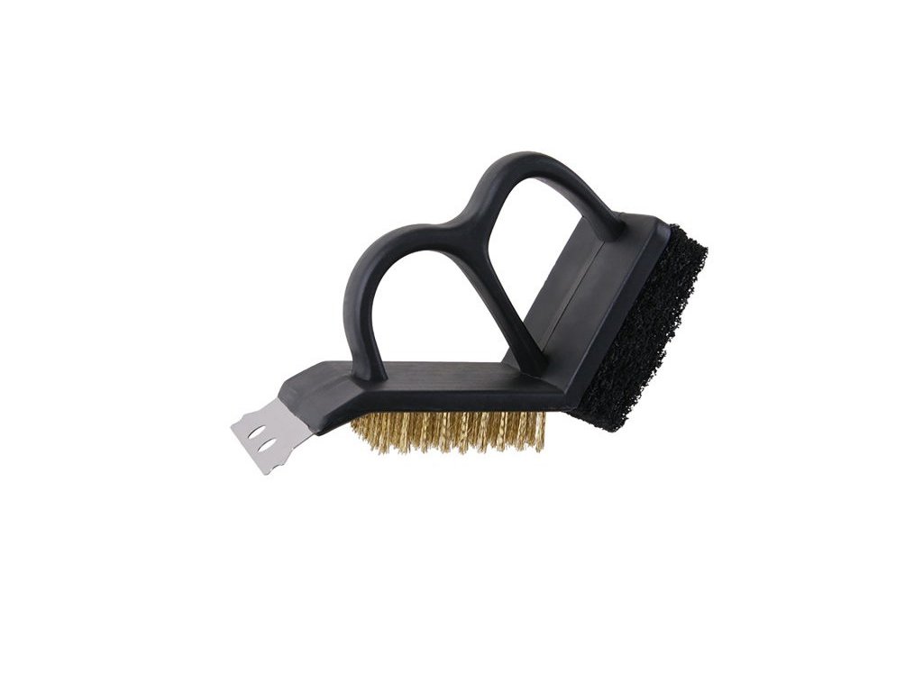 The 3-in-1 grill brush is a practical brush suitable for the maintenance of the grill and grill grate, a combination of scraper, brush and wire brush.