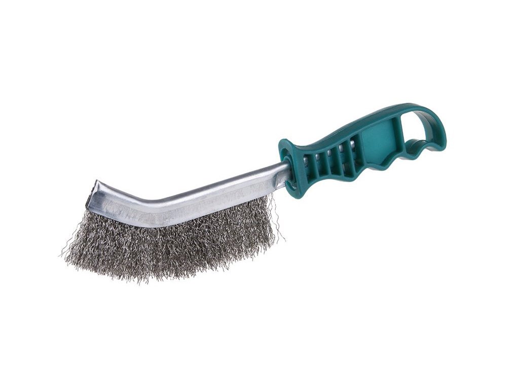 Stainless steel brush - manual, metal body with plastic ergonomically shaped handle, corrugated wire - stainless steel, number of wires 1480, use: for cleaning ferrous metals such as steel, stainless steel, cast iron, ... .
