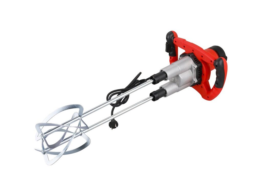 Miešačka s dvojitou rukoväťou na miešanie väčšieho množstva materiálov Dve protiľahlé rukoväte zabraňujú vystreknutiu zmesi počas používania Technické údaje Výkon (W) 1800 Voľnobežné otáčky (f/p) 0 - 450 / 0 - 79 Napätie (V) 230