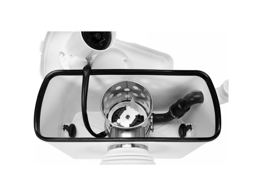 - Kis méretei miatt a szivattyú bármely hagyományos WC kompaktor mögé beilleszthető