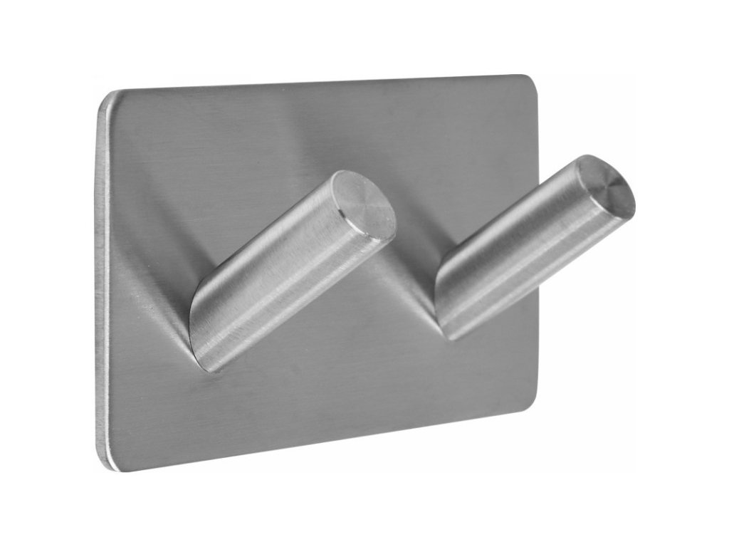 Kettős akasztó a Steely kollekcióból, masszív, kefélt 304-es rozsdamentes acélból készült. Tökéletesen kiegészíti a modern fürdőszobák és konyhák dekorációját, praktikus kiegészítő a bejárati előszobában és öltözőben is. A nagyon tartós 3M kétoldalú szalagnak köszönhetően fúrás nélkül rögzíthető a falra.