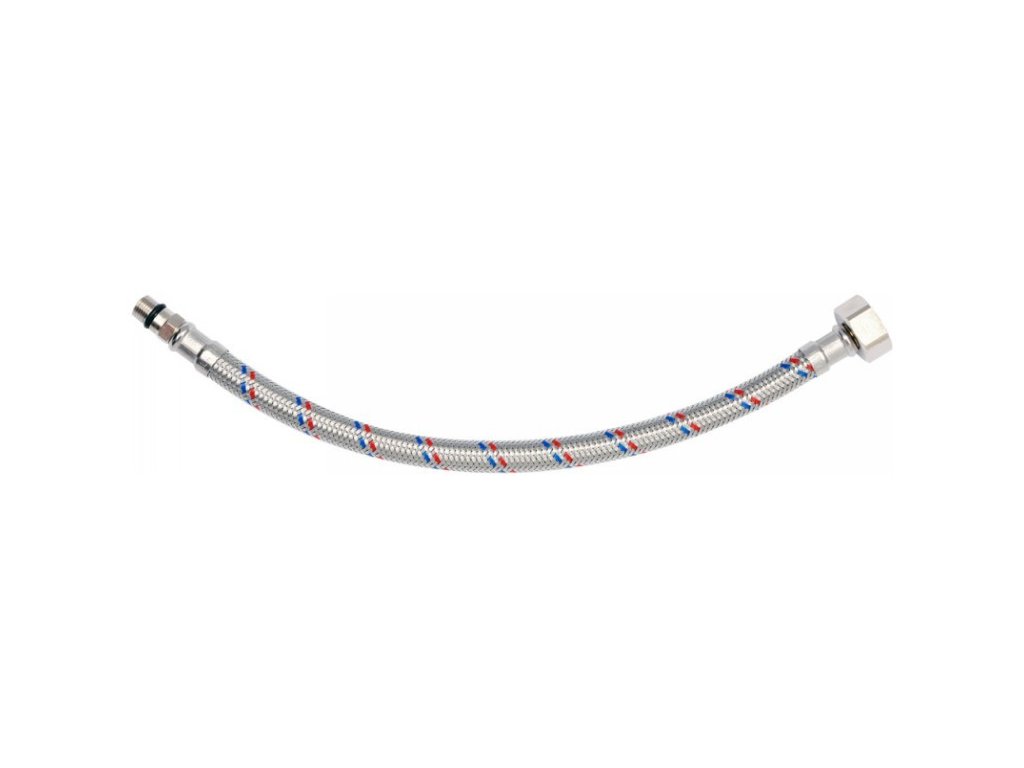 Rugalmas csatlakozócső csaptelepekhez rozsdamentes acél fonott. Meleg és hideg víz számára lett tervezve.