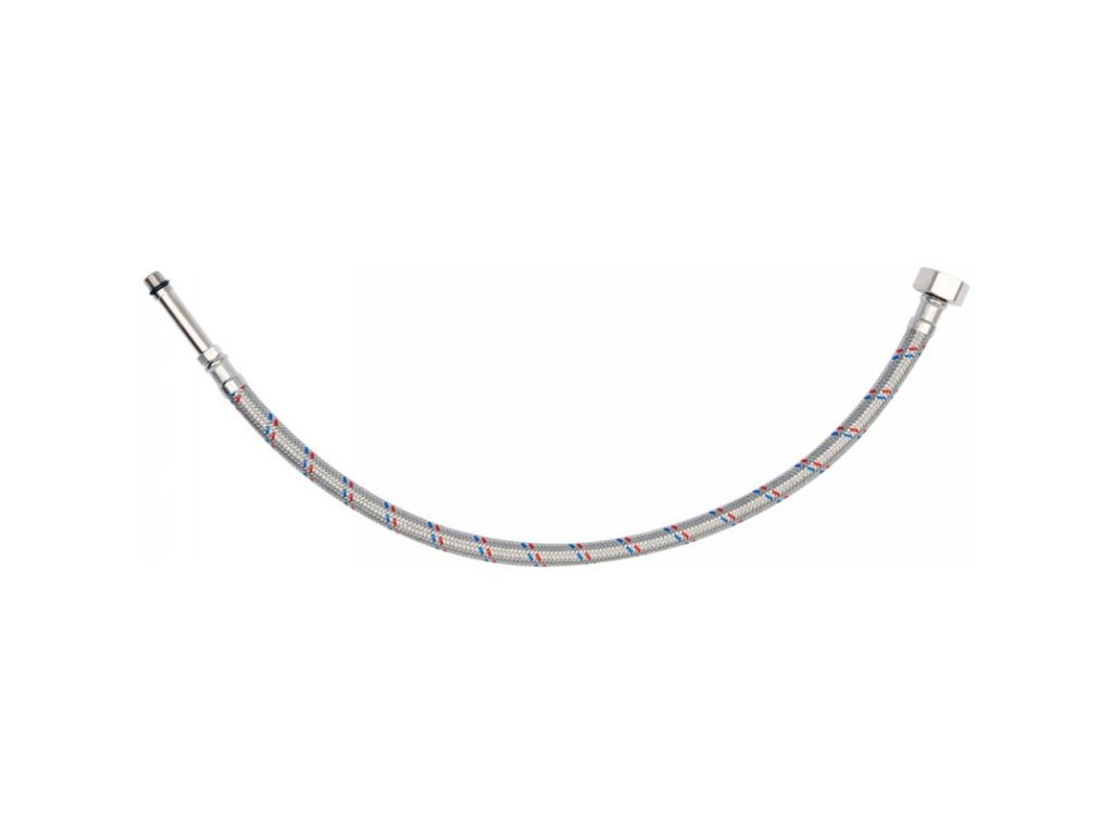 Rugalmas, rozsdamentes acélból szőtt csatlakozó tömlő csaptelepekhez. Meleg és hideg vízhez tervezték. A PZH által minősített ivóvízzel való érintkezésre. Hossza 500mm. Maximális nyomás 1MPa. Maximális hőmérséklet 90°C. Átlagos átfolyási sebesség 32L/perc. Belső átmérő 8mm és külső átmérő 12mm. Csatlakozó menet: belső 1/2" x külső M10 (50mm hosszú). EPDM gumiból készült gumi tömlő, nikkelbevonatú sárgaréz csatlakozók, EPDM gumitömítés. A mosdók és fürdőkádak csaptelepeinek szelepekkel való összekapcsolására tervezték.