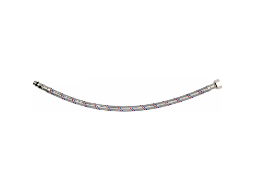 Rugalmas csatlakozó cső csaptelepekhez rozsdamentes acélból szőtt. Hideg és meleg vízhez tervezték.