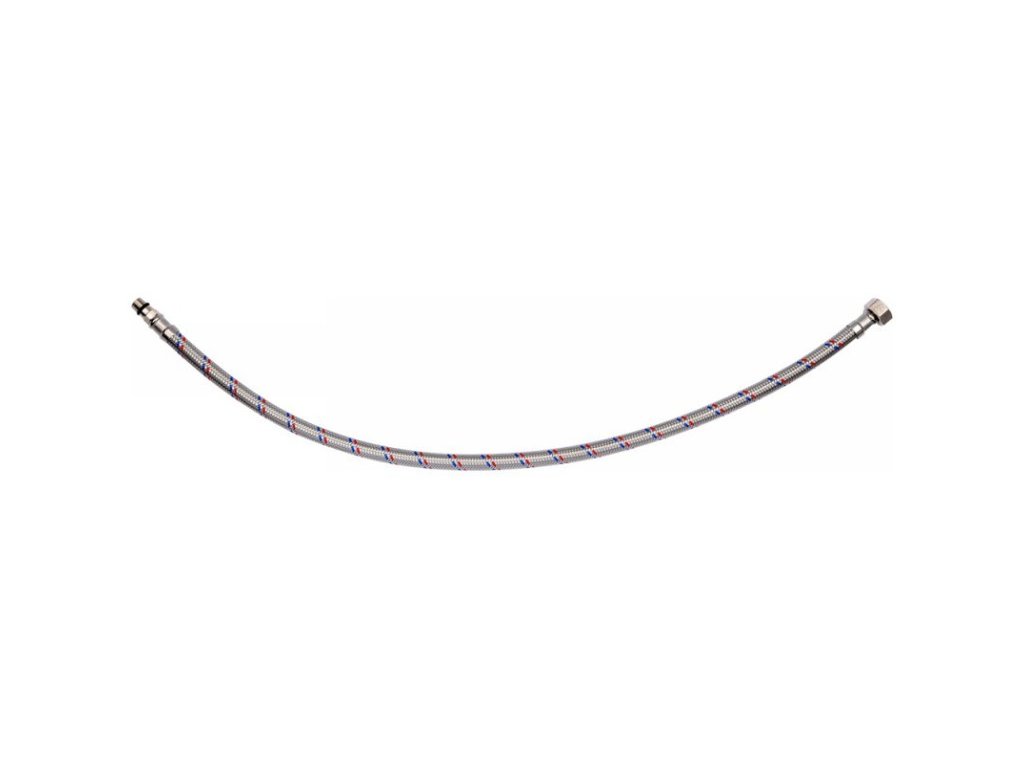 Csapokhoz rugalmas csatlakozó tömlő rozsdamentes acélból szőtt. Hideg és meleg vízhez tervezték.
