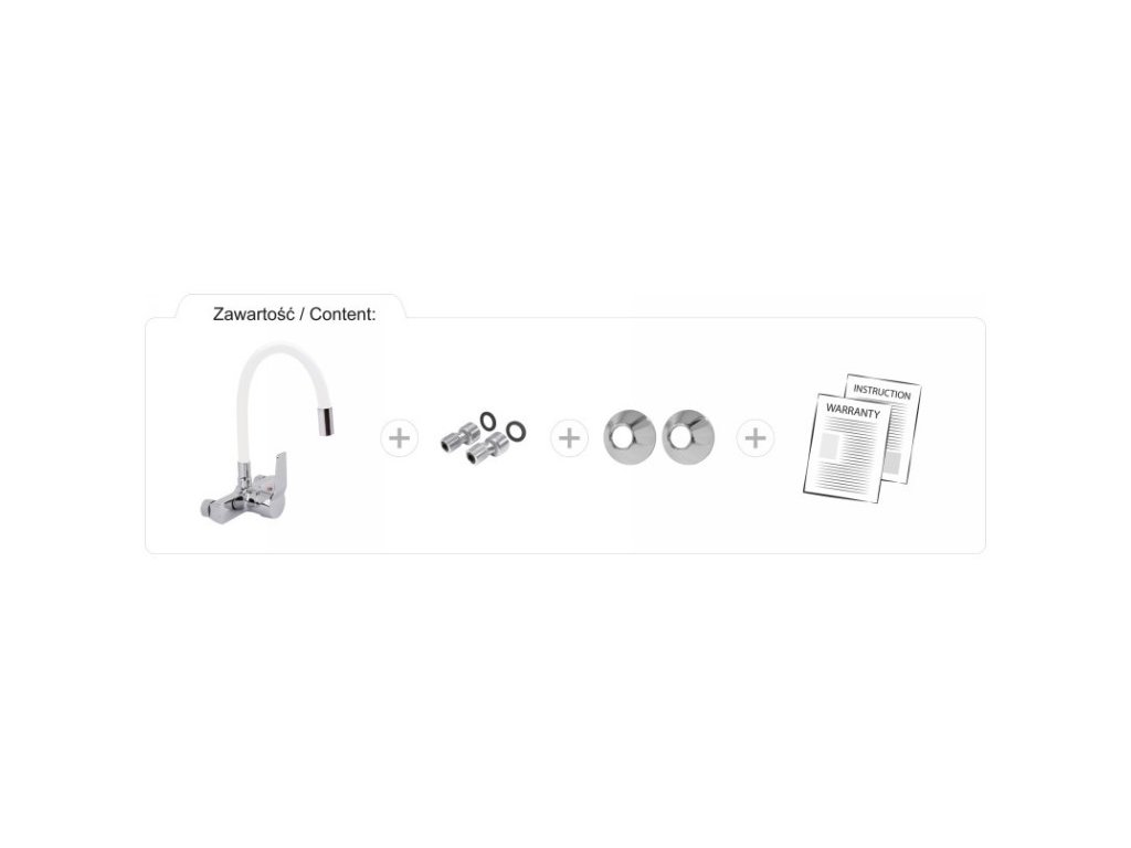 Drezová batéria fali biela flexibilis csővel + tartozékok FALA