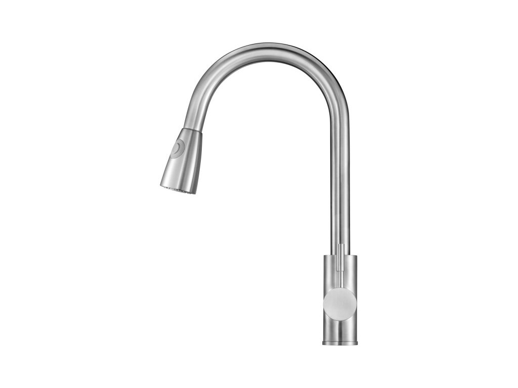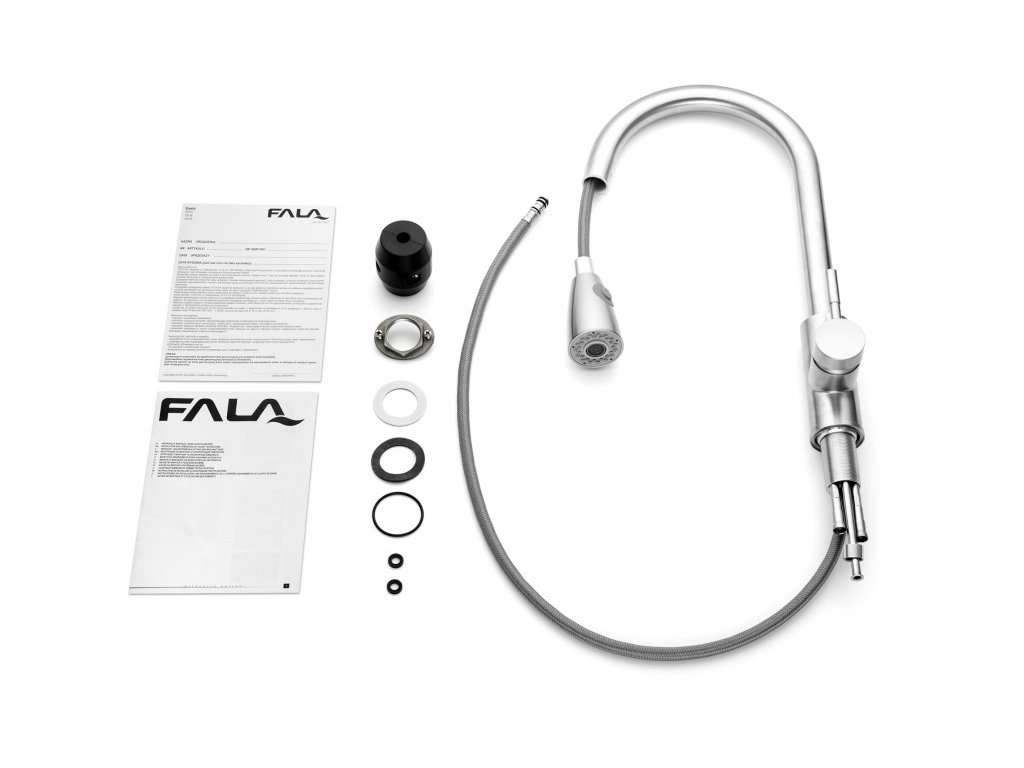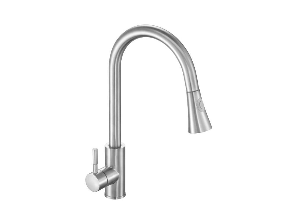A magasan elhelyezett és 360 fokban forgatható kifolyó és kihúzható cső nagy teret biztosít a csaptelep szabad és kényelmes használatához.