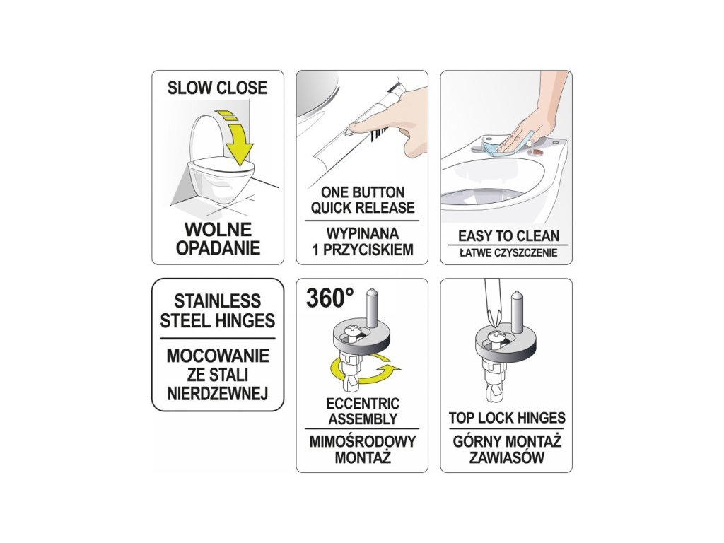 - a excentrikus rögzítési beállításnak köszönhetően könnyen illeszkedik a legtöbb WC-csészéhez, mind kompakt, mind fali kivitelben