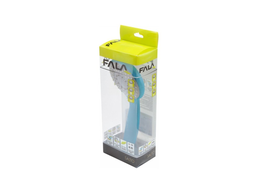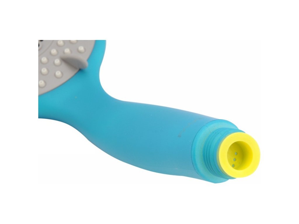 Három funkciós zuhanyfej Salto azok számára készült, akik szeretnék színessel feldobni a fürdőszoba dekorációját. Tartós és könnyű műanyagból készült, ABS anyagból, ami nagyon praktikus. A felületet soft touch típusú bevonattal látjuk el, ami kellemes tapintásúvá teszi.