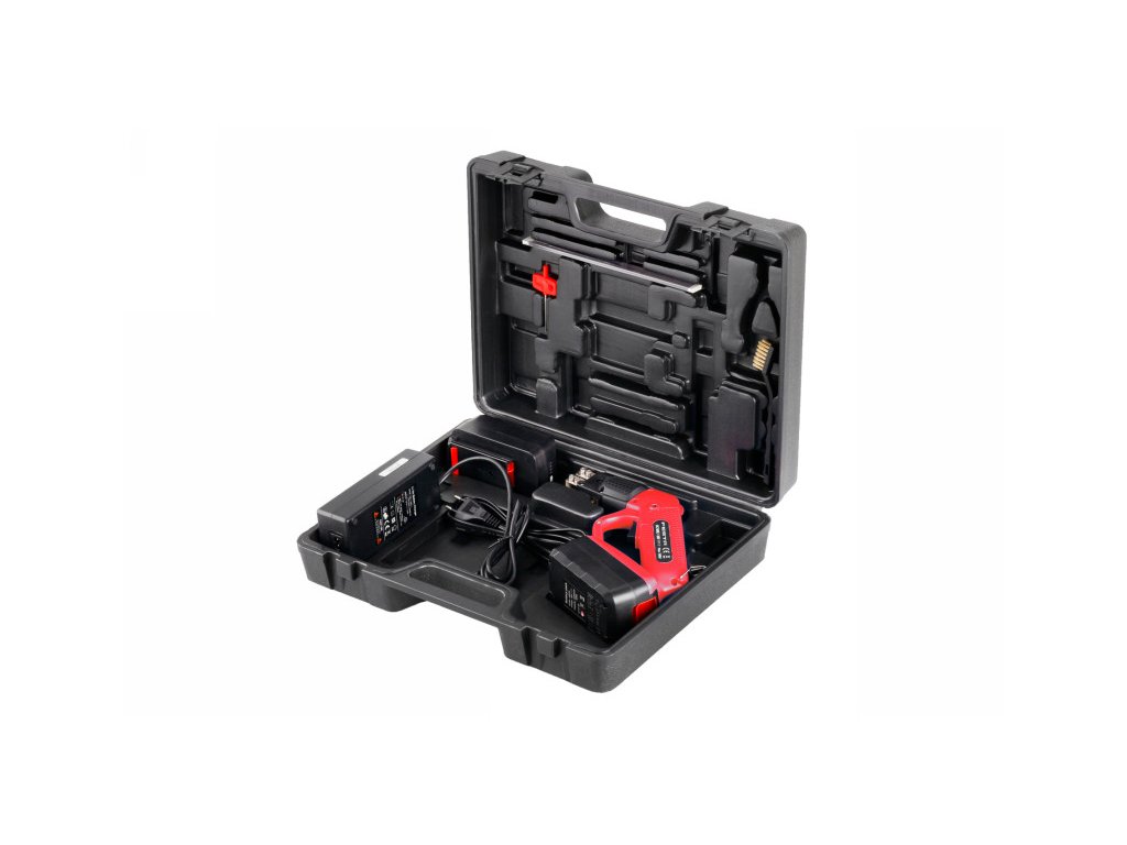 cordless polystyrene cutter in plastic case including 2 batteries, charger and assembly and cleaning accessories