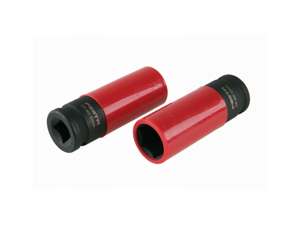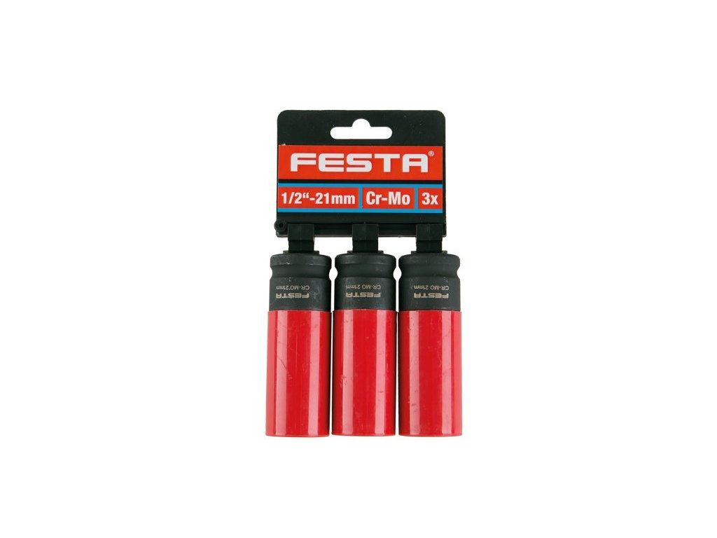 High-quality FESTA alloy wheel hub set, made of Cr-Mo steel - excellent quality of materials and workmanship for industrial and professional use, 1/2" socket, suitable for pneumatic tools, plastic protection against damage to the disc. Packed on a hanger with a Euro hole.