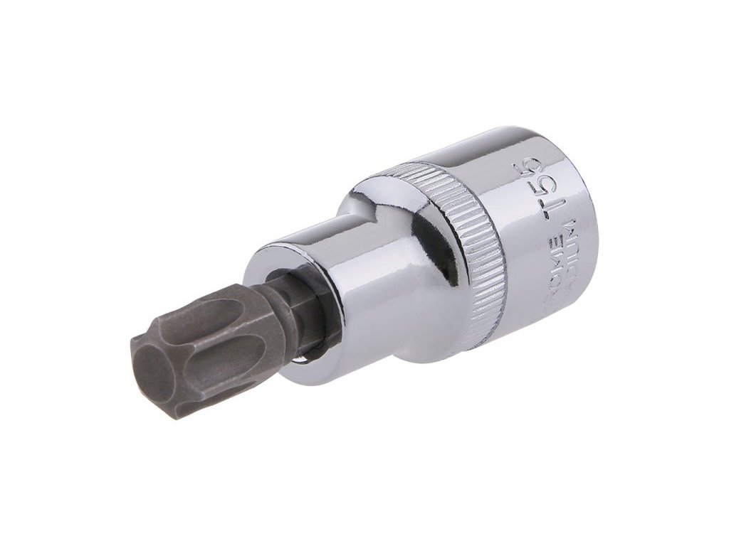 TORX 55 1/2" screw bit with pressed-in bit made of chrome-vanadium steel.