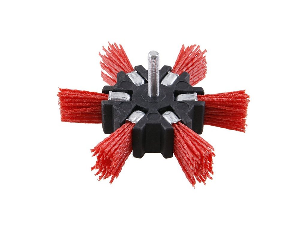 Rotary brush, design: corrugated nylon wire 1.2 mm, diameter 100 mm, shank 6 x 27 mm, wire length: 22 mm, max. permissible revolutions: 3500 rpm, use: for polishing and cleaning work, removing old coatings, wood treatment ..., packaging: blister with euro hole.