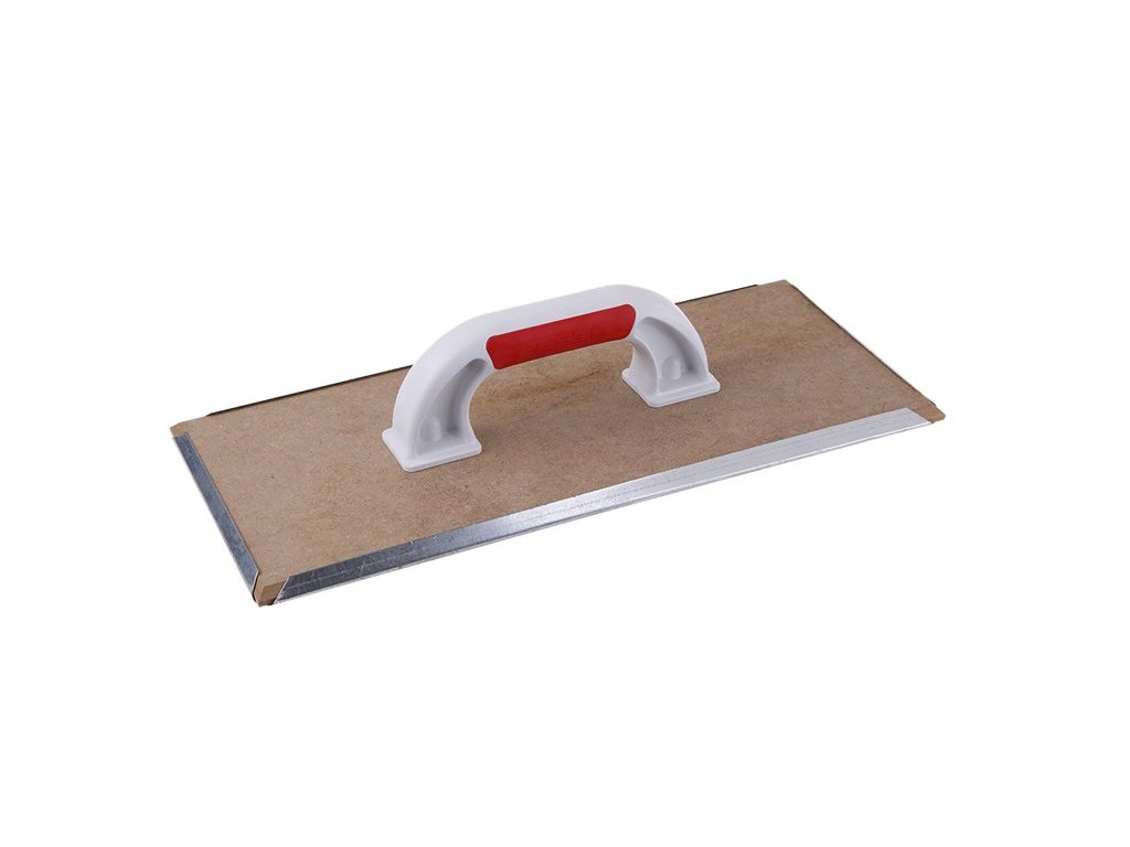 Old plaster scraper wood + sheet 400 x 180 mm with plastic handle. It is a manual mason's work tool intended for removing old lime-cement plasters or for aligning Ytong aerated concrete blocks. The base is made of so-called MDF board, which means medium-density fiberboard, grater made of high-quality steel.
