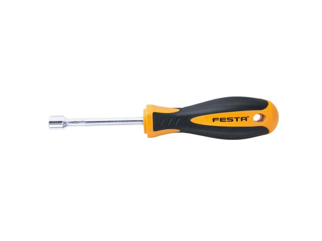 The FESTA socket screwdriver has a metal shaft with an extension made of high-quality chrome vanadium steel, surface protected by hard chrome, the combination of polypropylene and rubber on the ergonomically shaped handle guarantees excellent anti-slip properties and good resistance to lubricants and chemicals.
