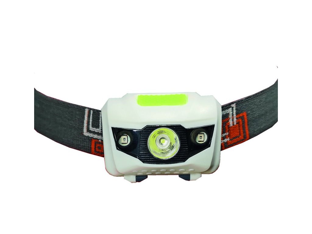 Compact and lightweight headlamp. Adjustable strap. Made of durable ABS plastic. Double the intensity of the main white LED light. Luminosity 120 lm! Adjustable tilt positions. Additional individually lit or flashing red LEDs. Waterproof design. Powered by 3x AAA batteries. Suitable for work, sports and camping.