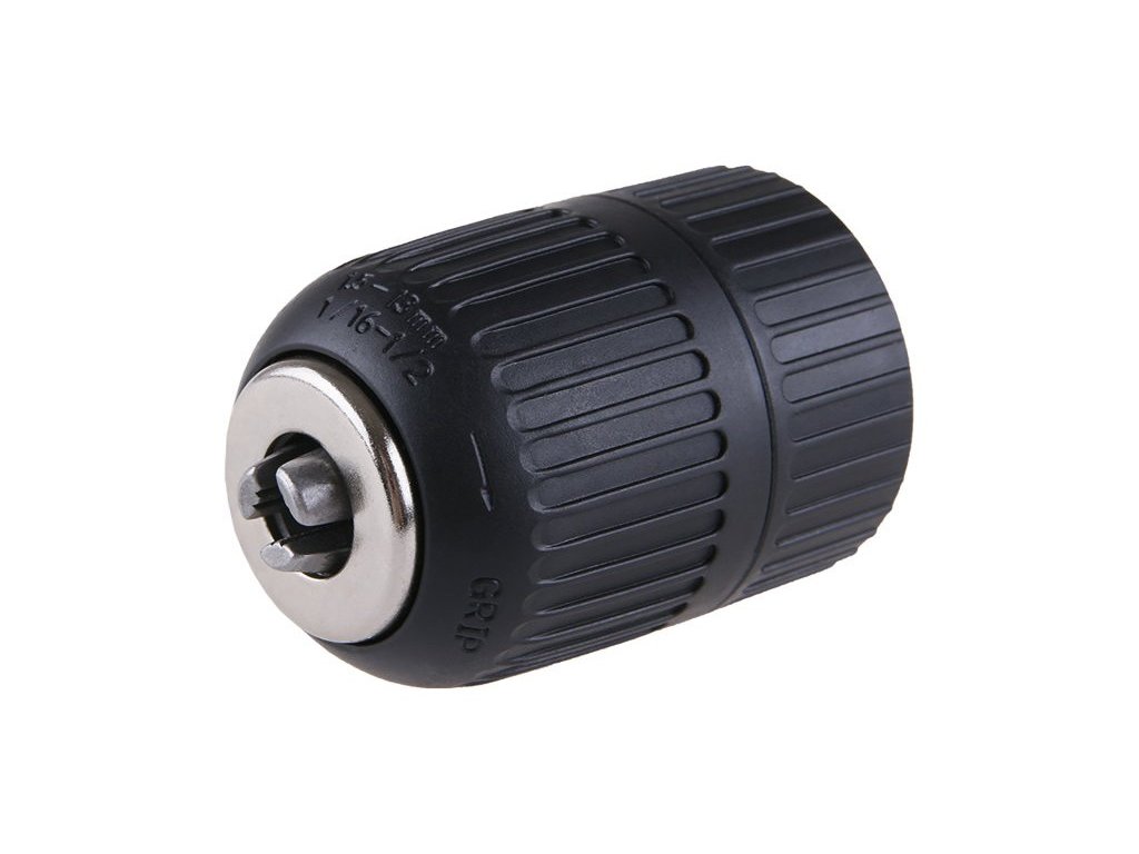 Quick-release chuck, three-jaw, quality materials and precise processing, clamping range for tools 2 – 13 mm, Clamping 1/2 – 20 UNF, use: drills, hammer drills, cordless drills, cordless hammer drills, cordless screwdrivers, for quick manual clamping ( tightening) of the working tool, (can be combined with adapter 20745 for attaching the chuck to machines with a head with SDS + clamping), packaging plastic box with euro hole.