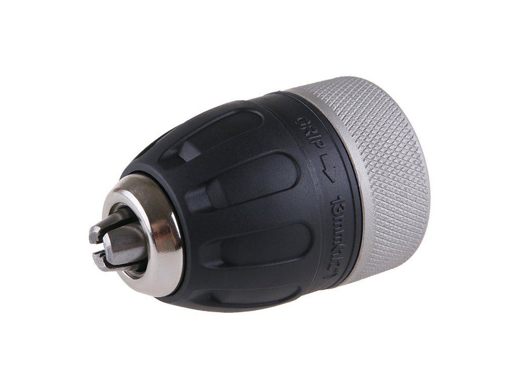 Quick-clamping chuck, three-jaw, quality materials and precise processing, Click lock system - clamping with lock against release, clamping range for tools 1.5 – 13 mm, Clamping 1/2 – 20 UNF, use: drills, impact drills, cordless drills, cordless impact drills, cordless screwdrivers, for quick manual clamping (tightening) of the working tool, (can be combined with adapter 20745 for attaching the chuck to machines with a head with SDS + clamping), packaging plastic box with euro hole.