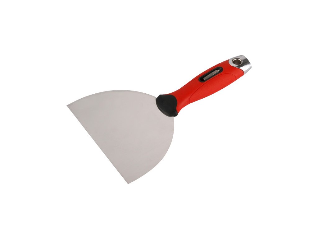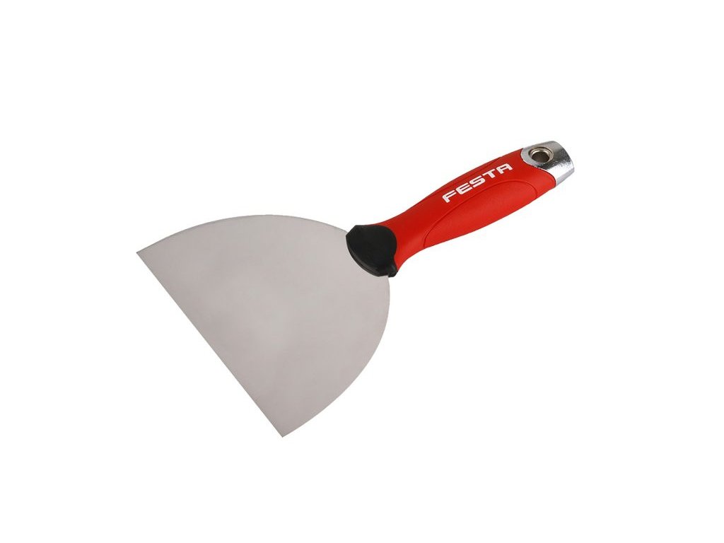 Spatula with stainless steel bit FESTA 150 mm is made of high-quality stainless steel, the handle is ergonomically shaped and rubberized. It is used in the construction industry, especially in the plasterboard industry, for the perfect covering of plasterboard joints. In the upper part of the handle there is a Ph °2 insert, which is used in the case when it is necessary to tighten screws protruding from the surface.