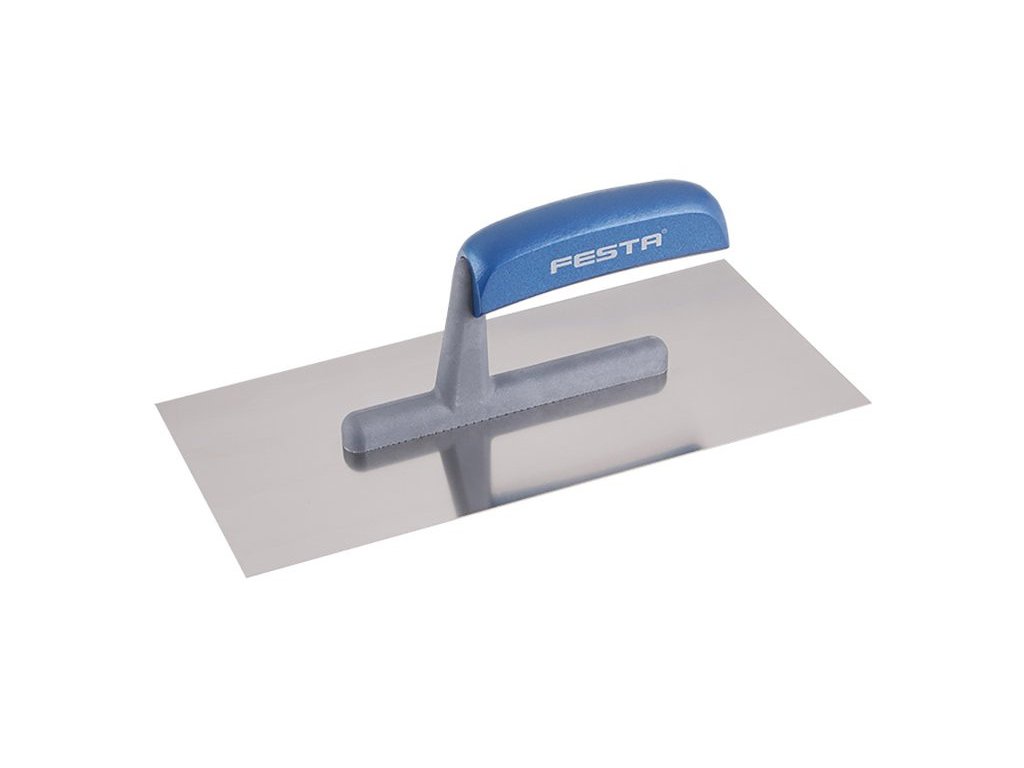 Stainless steel straight trowel FESTA 280x130 mm with wooden lacquered handle, sheet thickness 0.8 mm. The blade is perfectly shaped, it is made of first-class hardened stainless steel. is mainly used for applying adhesives under tiling and paving, as well as for applying screeds, stucco, plasters, sealants and other building materials.