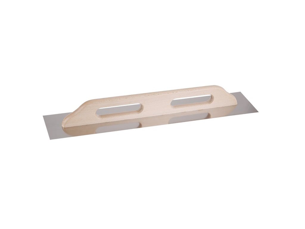 Stainless steel straight trowel FESTA 680x130 mm EXTRA with wooden handle, sheet thickness 0.7 mm. It is mainly used for applying adhesives under tiling and paving, as well as for applying screeds, stucco, plasters, sealants and other building materials.