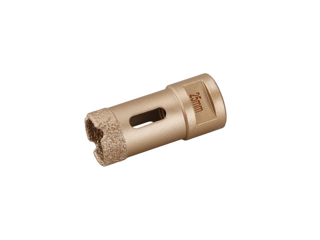 Ajánlott munkafolyamat - csavarja a koronát közvetlenül a sarokcsiszoló fejének menetére, húzza meg erősen, kezdje el kivágni a kívánt lyukat 45°-os szögben, a korona és a csiszoló sebessége azonnal biztosítja az illeszkedést a kívánt helyre, lassan, egyenletes nyomással egyenesítse a fúrás irányát függőleges helyzetbe, kisebb átmérőjű 6 - 14 cm a kemény csempékbe való fúráshoz, minden lyuk között HIDEG - csak merítse egy pohár vízbe, vagy hagyja kihűlni a levegőn.
