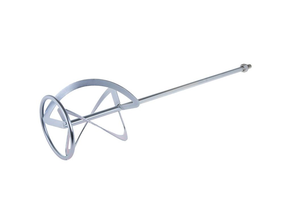 Stirrer - right-hand (mixing effect from bottom to top) - broom, galvanized, size: 140 x 600 mm - M14, use: for heavy materials with high viscosity, mortars, concretes, cement and lime plasters, bonding materials, screeds, epoxy resins, bituminous layers.