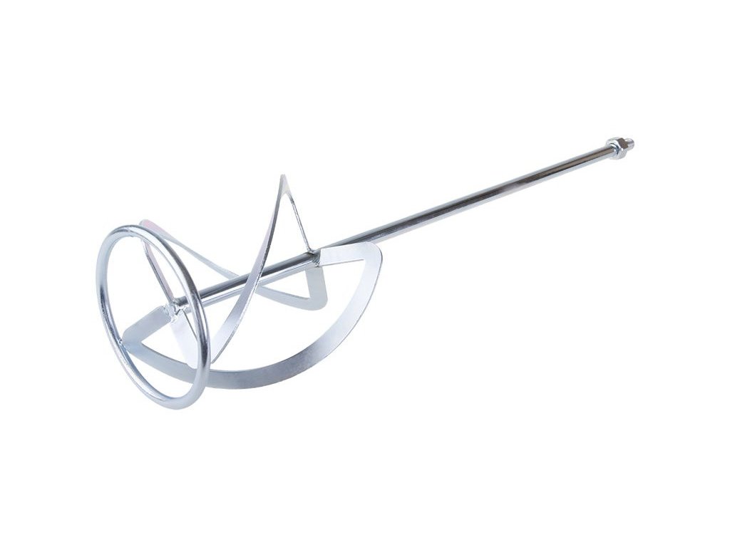 Stirrer - left-hand (mixing action from above pushes the mixture downwards) - whisk, galvanized, size: 140 x 600 mm - M14, use: for heavy materials with high viscosity. Mortars, concretes, cement and lime plasters, bonding materials, screeds, epoxy resins, bituminous layers.