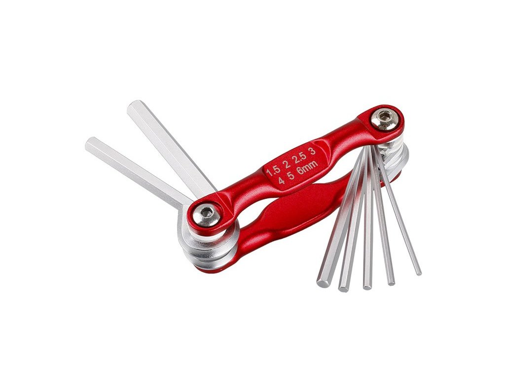 chrome vanadium steel allen set dimensions 1.5, 2, 2.5, 3, 4, 5, 6 mm practical closing design - body made of high-quality, durable and light aluminum alloy suitable for cyclists, motorcyclists or as a universal set of compact dimensions for a travel workshop bag - box