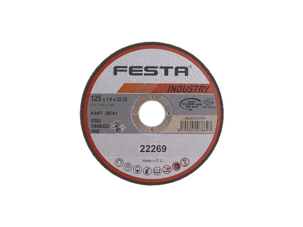 A FESTA professzionális vágótárcsák megfelelnek az EN 12413-nak szabványnak és az OSA homologizációnak.