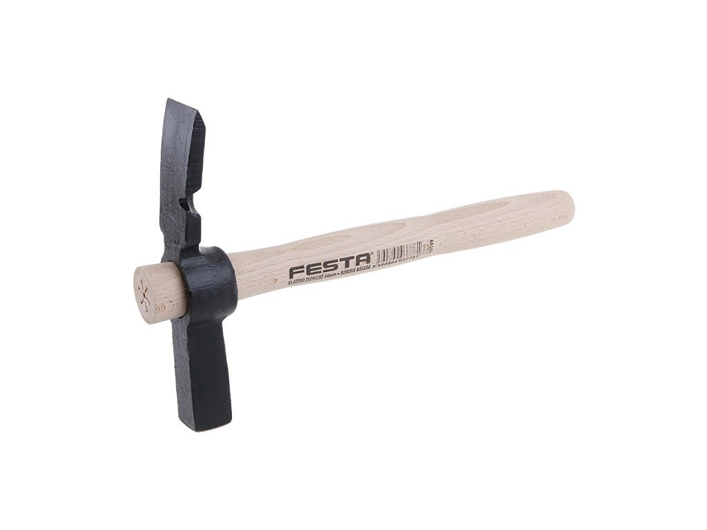 Masonry hammer 44mm FESTA with quality ash handle. The mason's hammer has one side equipped with a sharp edge and a nail puller, which is mainly used for knocking off old plaster or chopping bricks. The other side is a flat surface into which facade nails and staples are hammered. Czech production.