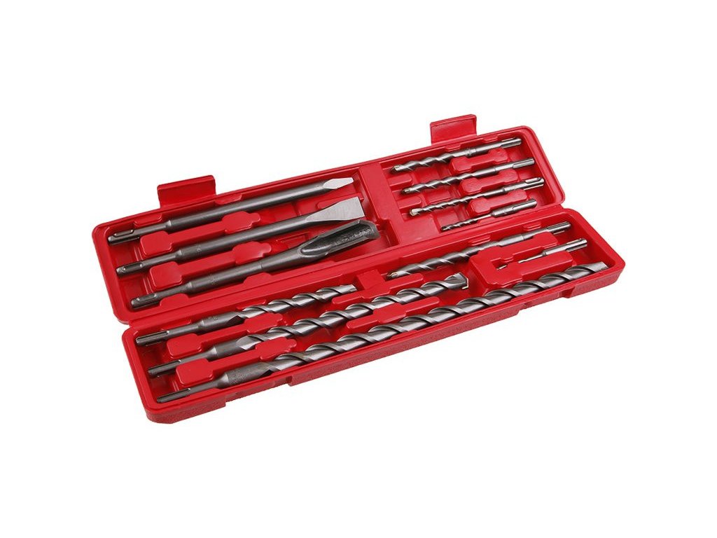 Chisels and drills SDS + - set of 12 pieces, high-quality combined set of chisels and drills with attachment in SDS + electric hammer drills (can be combined with adapter item no. 20744 in machines with SDS MAX attachment), composition: 5, 6 * 110mm - 8 , 10, 12 * 160mm - 14, 16 * 210 - 18*350mm, 20*450mm, use: chisels - for demolishing, chopping, grooving concrete, masonry, paving...., drills - for percussive drilling in concrete, masonry, paving , earthenware..., packaging: durable plastic box.