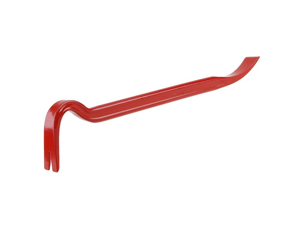 Pry bar for prying crates, for pulling out nails. Properly shaped to maximize strength, oval shape.