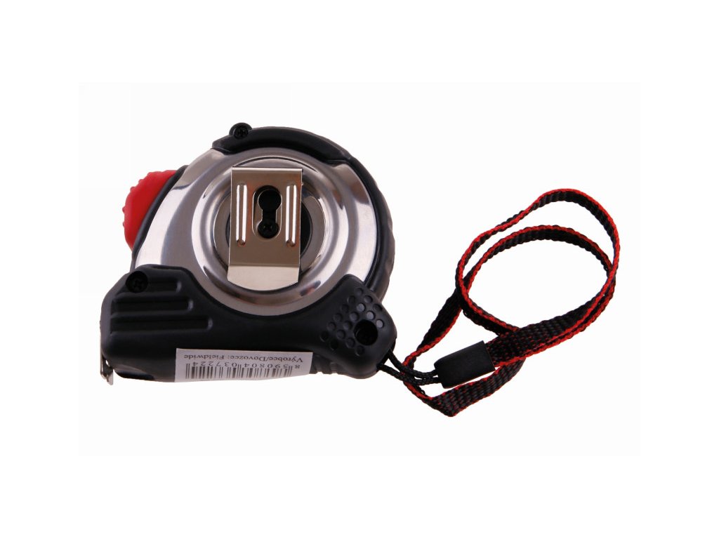 High-quality tape measure, hardened tape, easy-to-read scale, EEC certificate - meter suitable for calibration, meter case made of stainless steel with rubber protection - higher impact resistance and better stability when handling the meter, tape stop made of softened rubber, tape end freely stored for measuring external and internal dimensions, loop, belt clip.