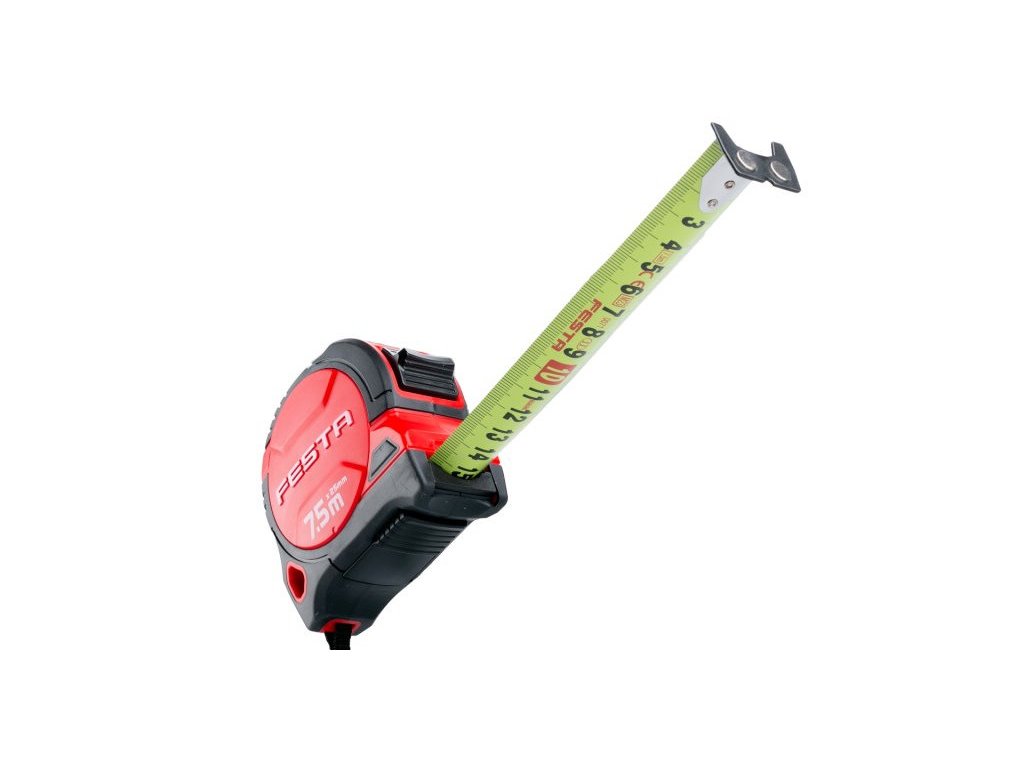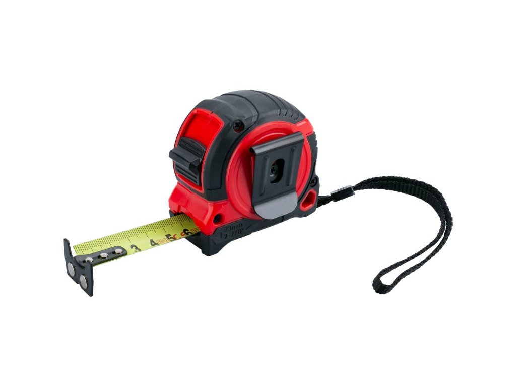 Tape measure with magnetic hook hardened tape, easy-to-read scale, CE certificate - meter suitable for calibration meter case made of ABS plastic with rubber protection - higher resistance to damage and better stability during handling 3x brake - two braking, soft rubber tape stop magnetic hook with floating attachment for internal and external measurements, loop, belt clip < /ul>