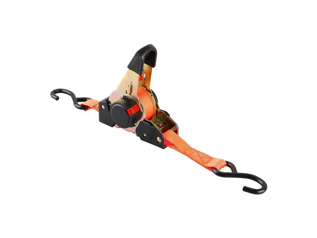 Samonavíjacie, račňové háky na zaistenie nákladu, na bezpečné zaistenie nákladu pri preprave, na viazanie a upevnenie stanov, stojanov, na upevnenie plachiet a pod napínací račňový mechanizmus s bezpečnostnou poistkou kompaktné rozmery, rýchla manipulácia, jednoduché a priestorovo nenáročné skladovanie Technické údaje Rozmery 25 mm x 3,5 m Nosnosť 320 kg