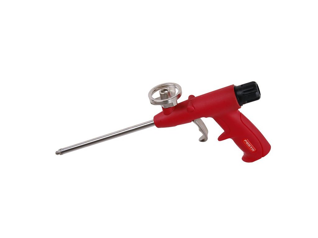 Gun for PU (polyurethane) foam, body made of durable ABS plastic in combination with metal guide, smooth regulation of the amount of foam, easy maintenance, thread for attachment, metal valve ball, application tubes for precise application of foam to the desired place, use: gun for work with PU foam, facilitates application and convenient and precise dosing of the foam to the required place, - construction, well construction..., packaging: paper box with window and Euro hole, gun, 2 x tip, 2 x tube.