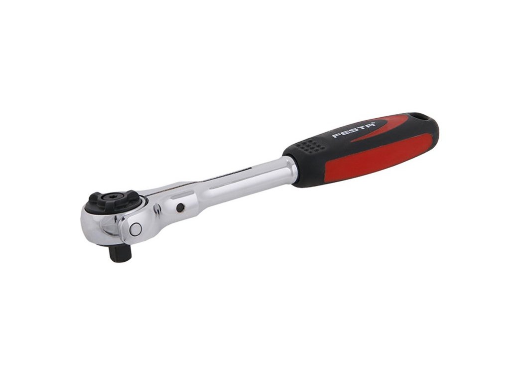 Quality FESTA ratchet with a body forged from chrome-vanadium steel and a swivel joint for working at an angle, 1/4 - 72 teeth with a control lever and an ergonomic rubber oval handle. The ratchet of the torque wrench consists of 72 hardened teeth, which enable the engagement step after only 5 degrees of arc.
