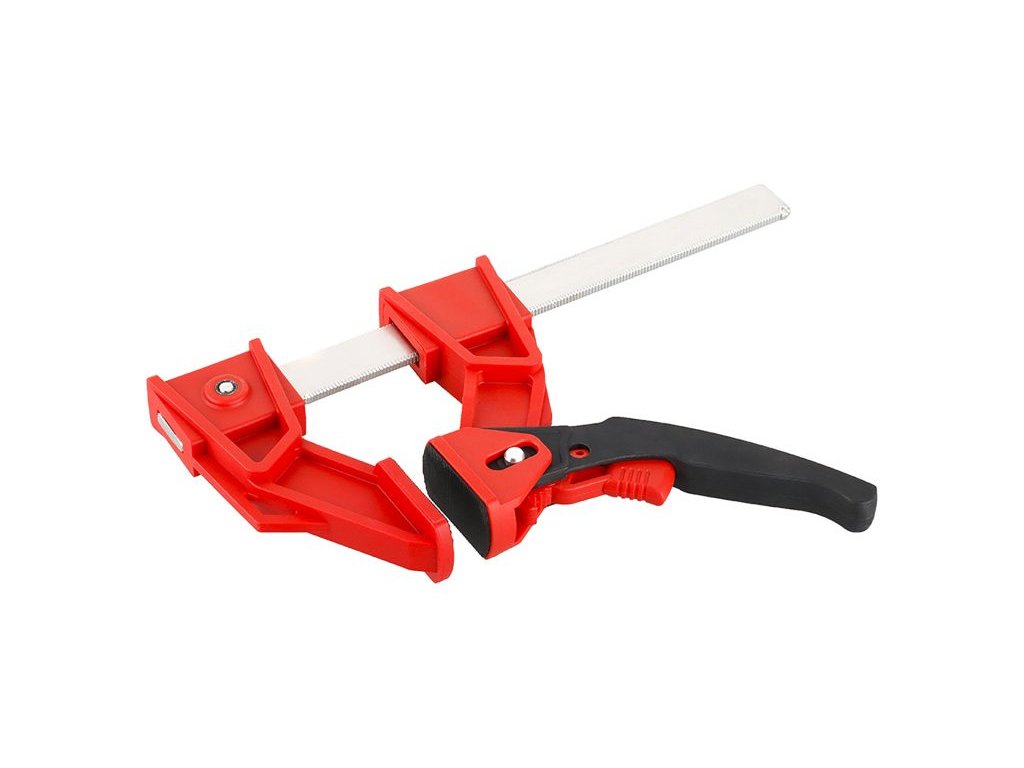 Quick release clamp with nylon arms lever quick-clamping mechanism with tooth lock movable jaw for precise adaptation to the shape of the clamped material the construction of the clamp enables it to be used as a spacer by quickly adjusting the arms for professional carpentry, joinery , workshop work