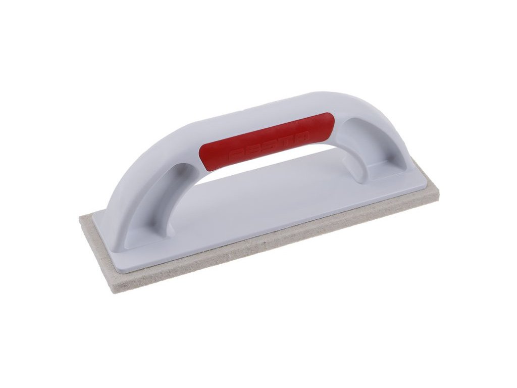 FESTA trowel with white felt, base made of high-quality plastic with ergonomic handle, size: 220 x 70 x 10 mm, use: for comparing fine plaster, for finer plaster grain, surface composition 95% wool, density - 0.25 g/cm3 (+- 10%)